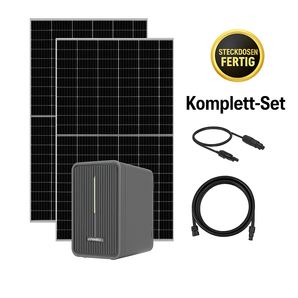 Das Komplettset ist so konzipiert, dass es den gesetzlichen Anforderungen in Deutschland und Österreich entspricht. Der Wechselrichter ist auf 800 Watt gedrosselt und erfüllt damit die Voraussetzungen für ein Balkonkraftwerk.